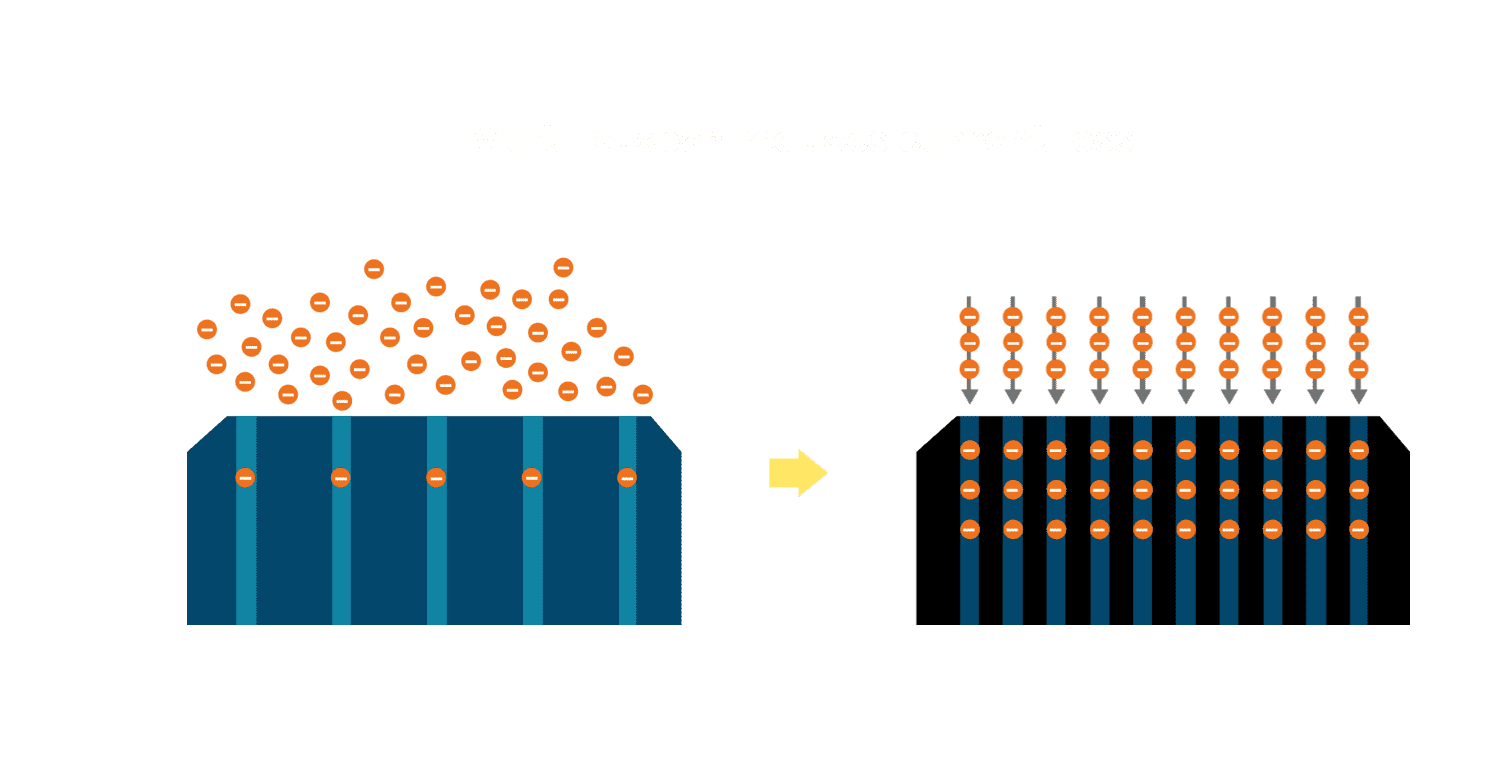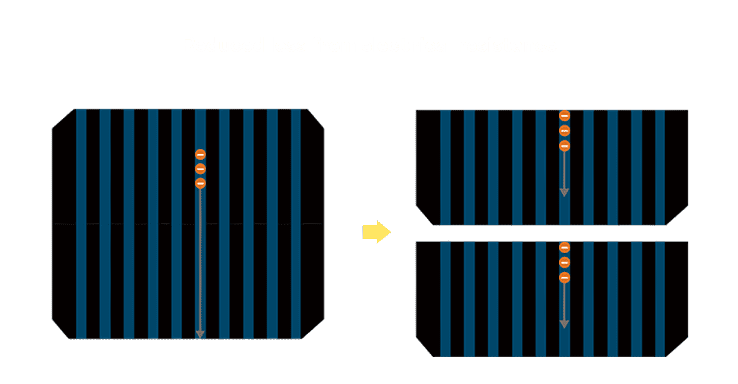 - 电池使用多条铜导线 (Copper wire) 于电池片上形成较短的电流路径,,提高电流收集效率,,,,采用圆形设计的铜导线较传统扁平式的铜焊带 (Ribbon),,,,可增加入射至电池的光线量。。